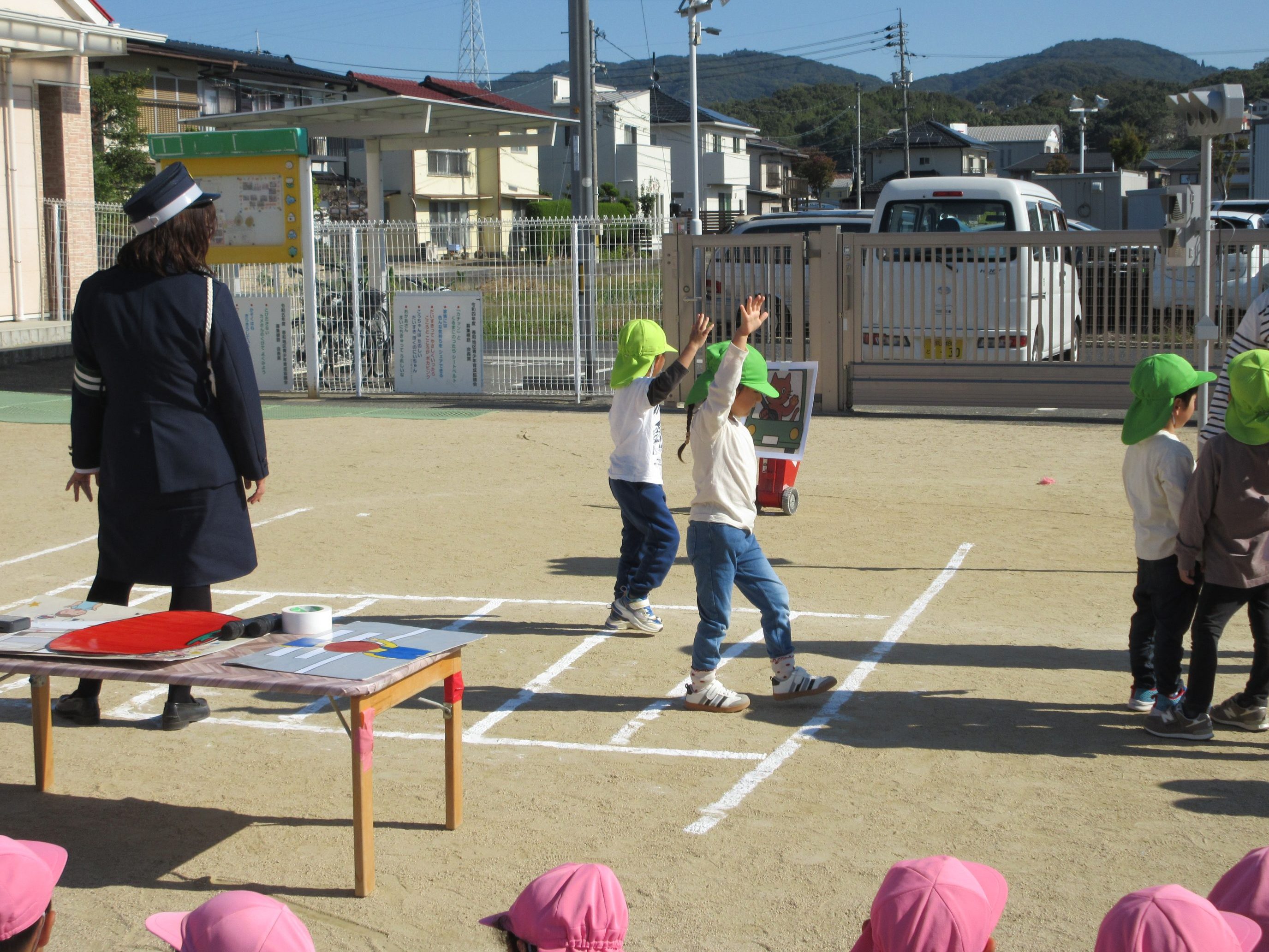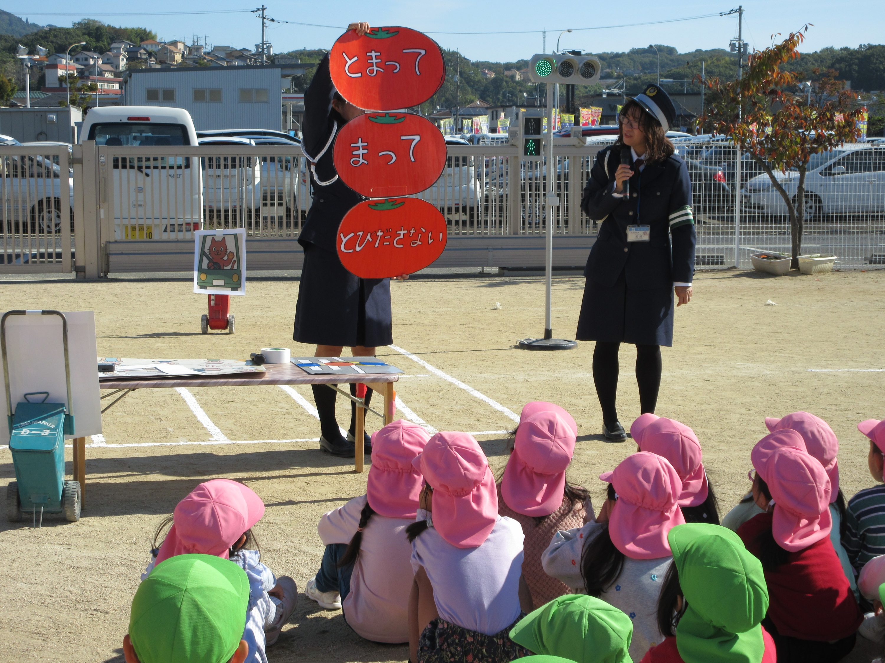横断歩道の渡り方を教えてもらいました。“いかのおすし”の話も聞きました。